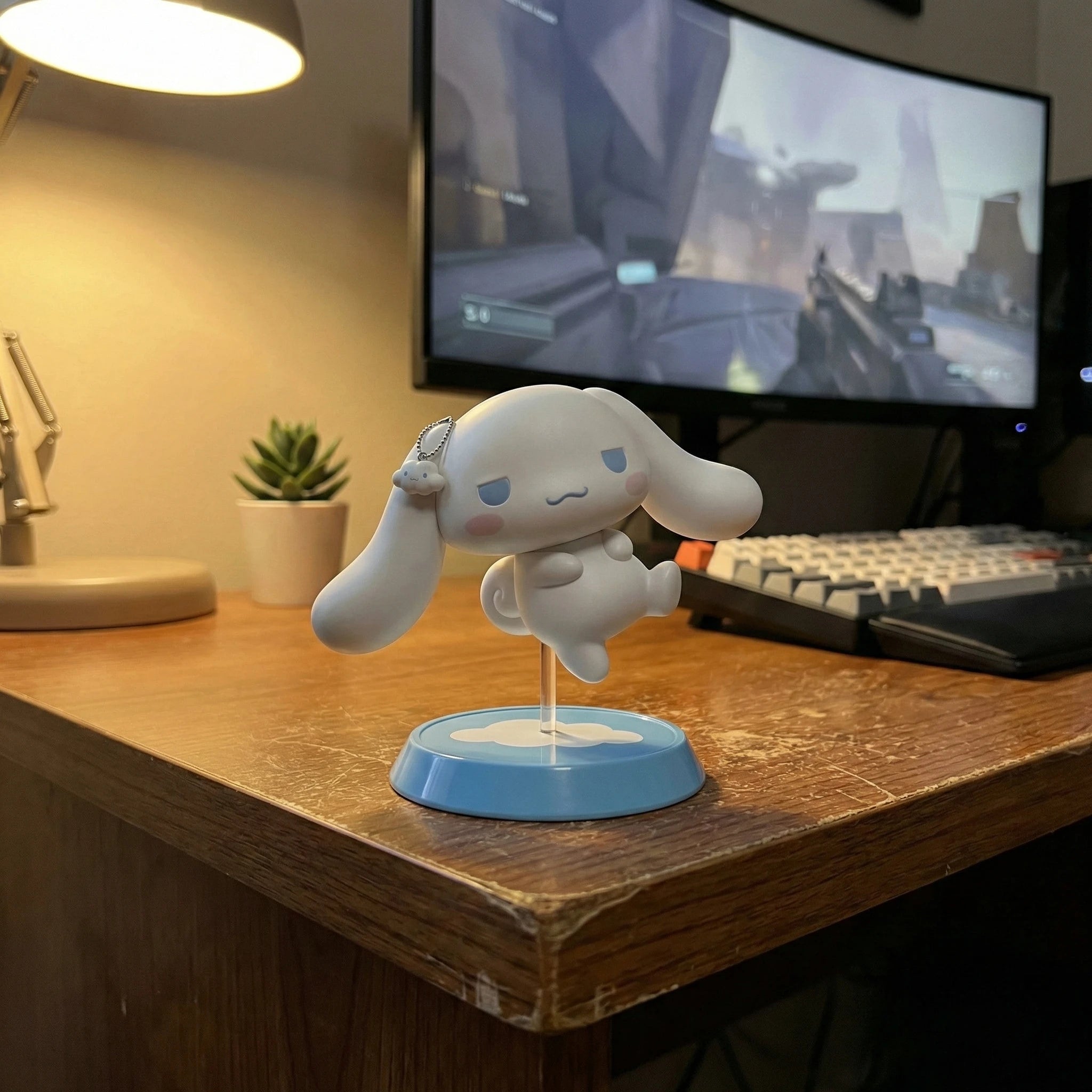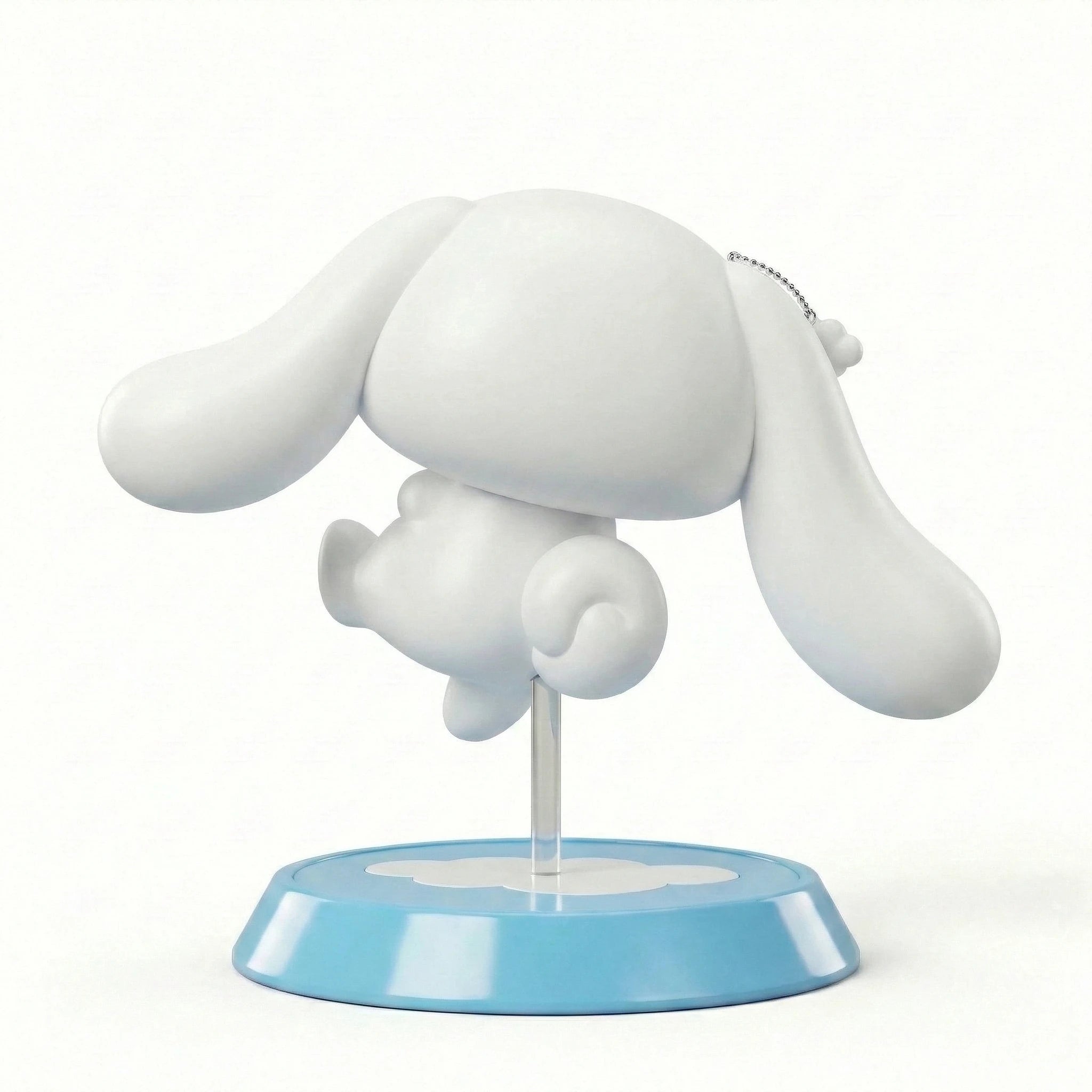 Bring home the airy sweetness of Cinnamoroll with this 1/7 scale chibi figure from the Sanrio Characters Figure Series V1. Crafted from premium PVC material, this piece captures the beloved white puppy in a whimsical floating pose that reflects his cloud-like nature, highlighting his long floppy ears and gentle, dreamy expression. Cinnamoroll’s signature long floppy ears are sculpted with elegant curves, framing his adorable face with soft blue eyes and a playful wavy mouth. A subtle pink blush warms his cheeks, and his iconic spiral tail is tucked neatly at the back. A miniature cloud charm attached to his ear by a delicate silver chain adds a unique touch of personality to his look. Each figure is carefully hand-painted to ensure vibrant, true-to-original colors that stay bright and bold over time. The smooth, high-quality PVC finish adds a premium feel, making this piece stand out in any display. This figure floats gracefully above a vibrant blue circular base decorated with soft white cloud patterns, supported by a clear stand that maintains the illusion of flight. Whether you’re a lifelong Sanrio fan or a dedicated collector of cute chibi figures, this Cinnamoroll piece is a must-have addition to your lineup. Complete your Sanrio Characters Figure Series V1 collection with this dreamy, charming figure and let Cinnamoroll’s lighthearted vibe brighten your space.