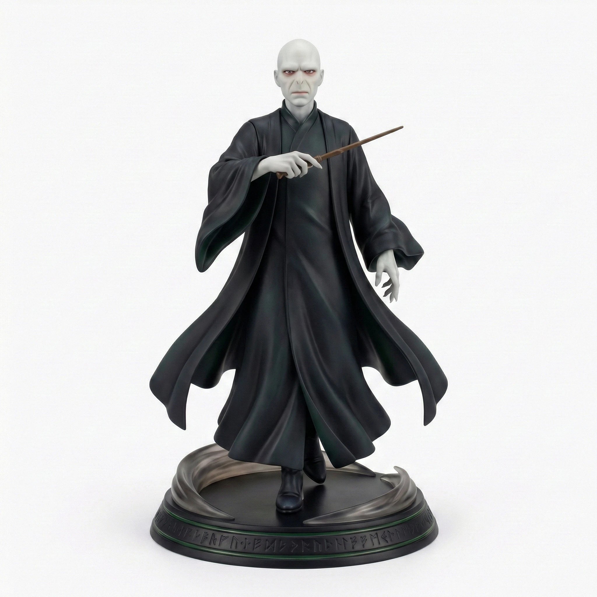 Bring the magic (and menace) of the Wizarding World into your collection with this stunning anime-inspired rendition of the feared Dark Lord, Lord Voldemort, from the Harry Potter Figure Series V1. Captured in a predatory, menacing stance, Voldemort exudes the cold terror and dark power that defines his character. His corpse-pale skin, piercing red eyes, snake-like face, and skeletal silhouette are meticulously sculpted, capturing his iconic, terrifying appearance. He wears flowing black robes with dynamic folds that suggest phantom-like movement, and holds his iconic yew wand with a phoenix feather core poised to cast a deadly curse. Crafted from high-quality PVC material with meticulous hand-painted details, every aspect of this figure is brought to life with exceptional precision, from the smooth texture of his pale skin to the intense glow of his red eyes. The figure stands on an intricate circular base adorned with ancient runes and swirling magical energy effects that enhance the dark, enchanted atmosphere of your display. This 1/7 scale collectible is an essential addition to any Harry Potter fan’s collection, whether you’re a dedicated collector or a newcomer to the magic. As part of the unified Harry Potter Figure Series V1, it pairs perfectly with other characters from the set to create a complete Wizarding World display. Add Lord Voldemort to your shelf today and keep the magic of the Wizarding World alive.