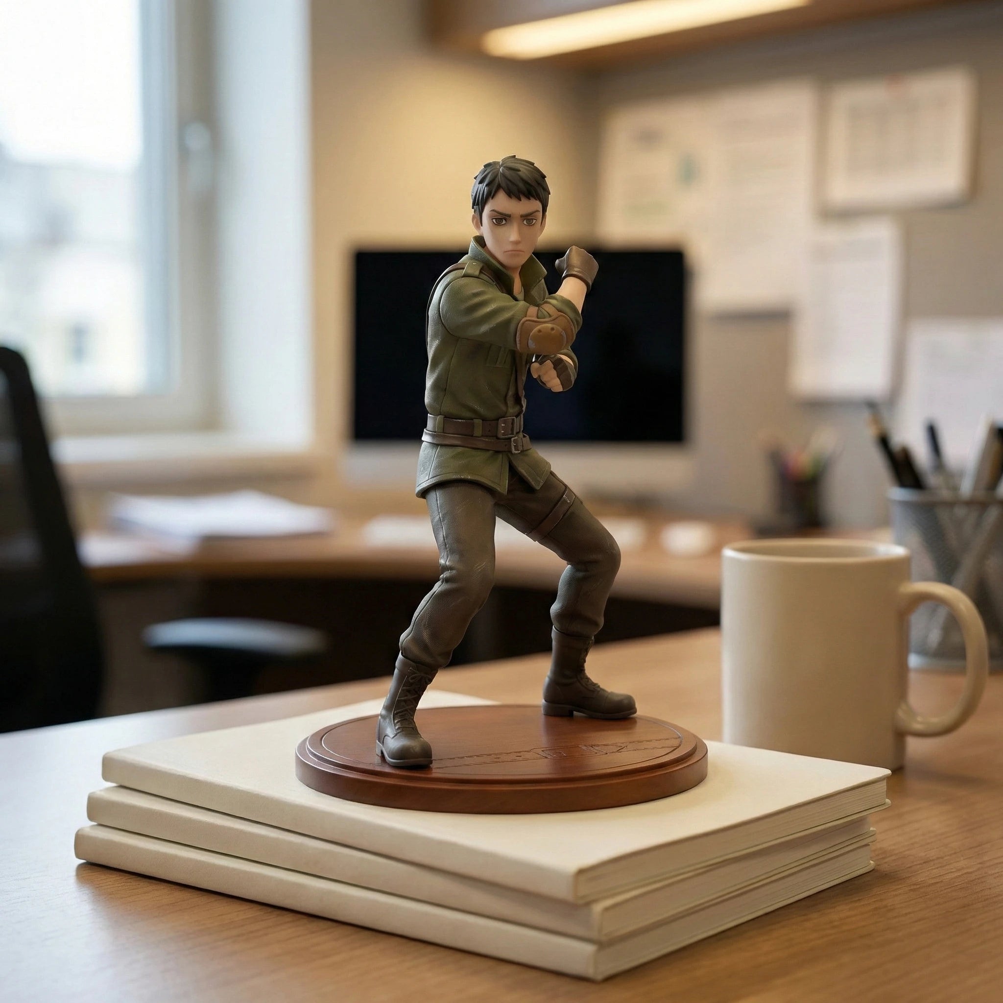 Crafted from high-quality PVC with meticulous hand-painted details, this figure captures the tactical intensity of the resilient Survivor. He stands in a combat-ready pose, clad in his signature olive green tactical jacket, rugged brown cargo pants, and heavy-duty boots, with weathered elbow pads and reinforced fingerless gloves reflecting his military background. His intense focused expression and sharp features are rendered with precision to bring this character to life.