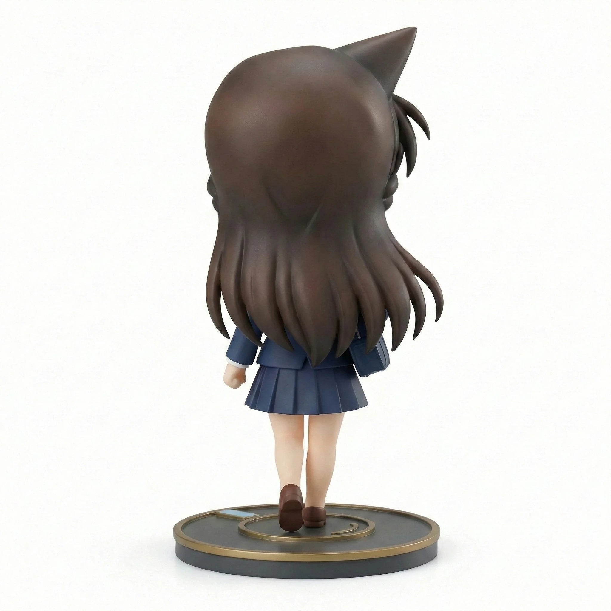 Bring home the kind-hearted yet fiercely protective Ran Mouri with this charming entry in the Detective Conan Figure Series V1 chibi collection. Capturing her iconic everyday look, this figure features her signature dark brown hair with the famous horn-like pointed forelock and soft violet-blue eyes that reflect her gentle, caring demeanor. She stands in a casual walking stance, dressed in her classic Teitan High School uniform: a dark navy blazer over a crisp white blouse with a light blue tie, matching navy pleated skirt, and simple brown loafers. A navy school bag slung over one shoulder adds a true-to-character touch. Crafted from durable, high-quality PVC with expert hand-painted details, every small element from the strands of her hair to the pleats of her skirt is carefully rendered for accuracy. The figure rests on a sleek dark circular base with polished gold trim and subtle Detective Conan-themed accents, making it a standout addition to any display. As part of the unified V1 chibi series, this collectible pairs perfectly with other Detective Conan figures, so don’t miss your chance to add this charming piece to your collection.