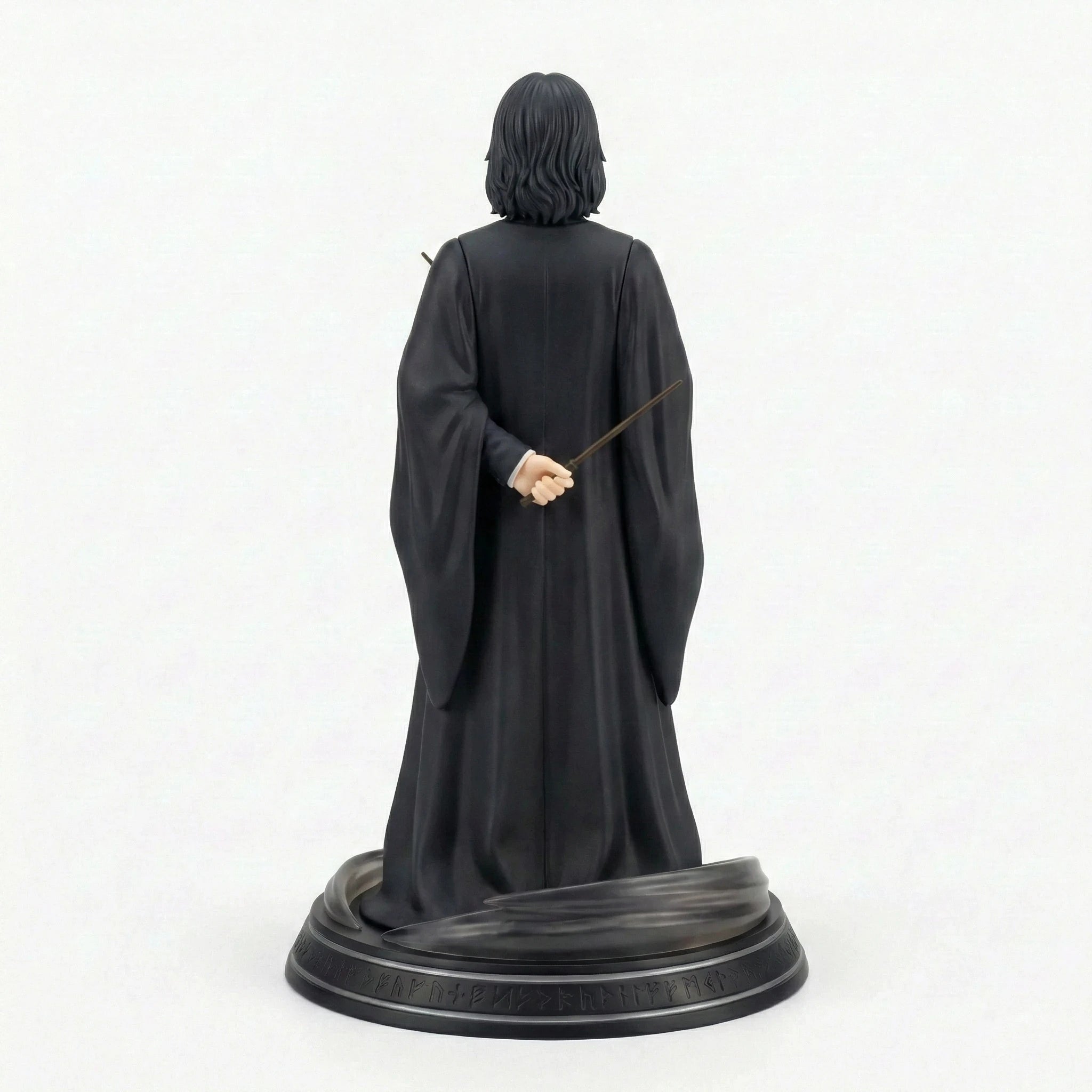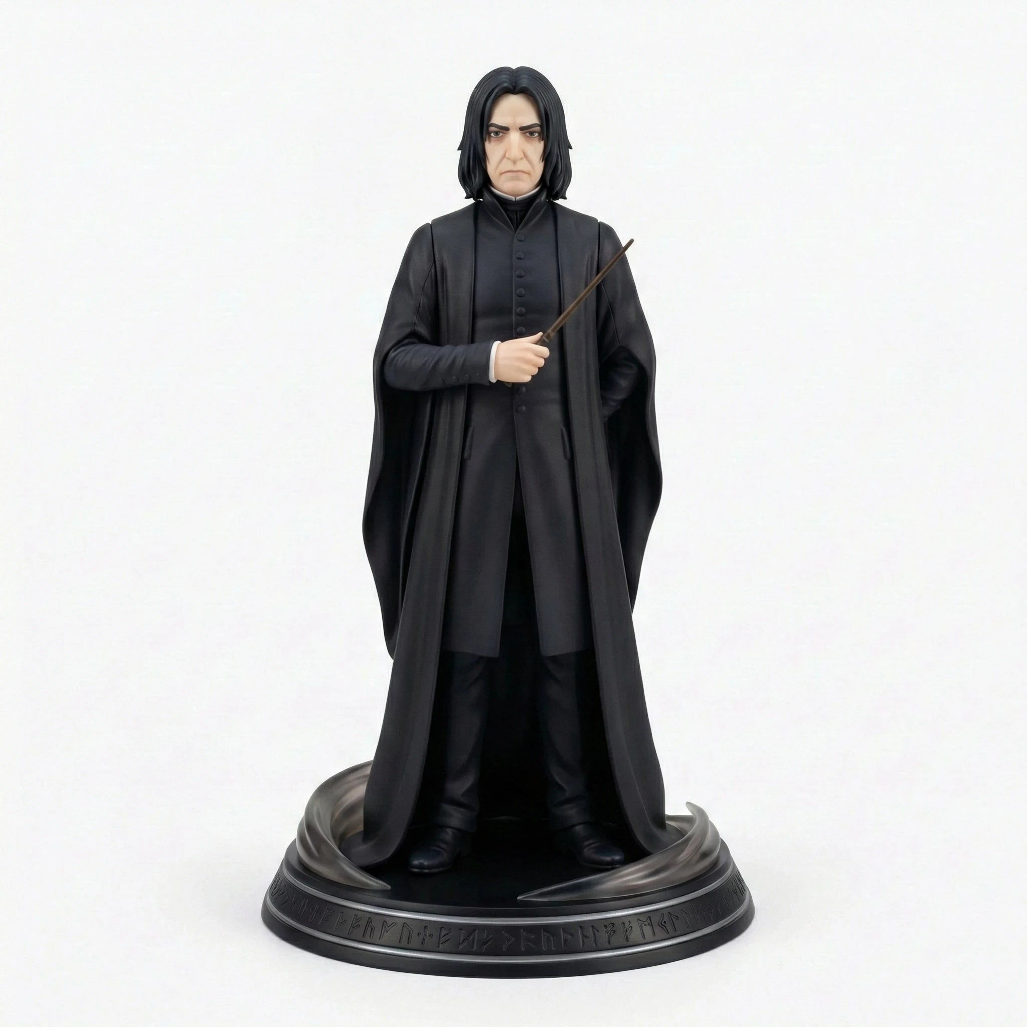Bring the magic of the Wizarding World into your collection with this stunning anime-inspired rendition of Hogwarts’ enigmatic Potions Master, Severus Snape, from the Harry Potter Figure Series V1. Captured in a stern, imposing stance, Snape exudes the stoicism and mystery that defines his complex character. His long, hooked nose, piercing dark eyes, and shoulder-length black hair are meticulously sculpted, capturing his sallow, relentless appearance. He wears his quintessential black attire: a high-collared frock coat layered with billowing robes that create his trademark bat-like silhouette. One hand is tucked behind his back while the other grips his wand across his chest, prepared for a duel or sharp reprimand. Crafted from high-quality PVC material with meticulous hand-painted details, every aspect of this figure is brought to life with exceptional precision, from the sharp lines of his face to the dark folds of his robes. The figure stands on an intricate circular base adorned with mysterious rune-like carvings and translucent smoke effects that add a sense of magical intensity to your display. This 1/7 scale collectible is an essential addition to any Harry Potter fan’s collection, whether you’re a dedicated collector or a newcomer to the magic. As part of the unified Harry Potter Figure Series V1, it pairs perfectly with other characters from the set to create a complete Wizarding World display. Add Severus Snape to your shelf today and keep the magic of the Wizarding World alive.